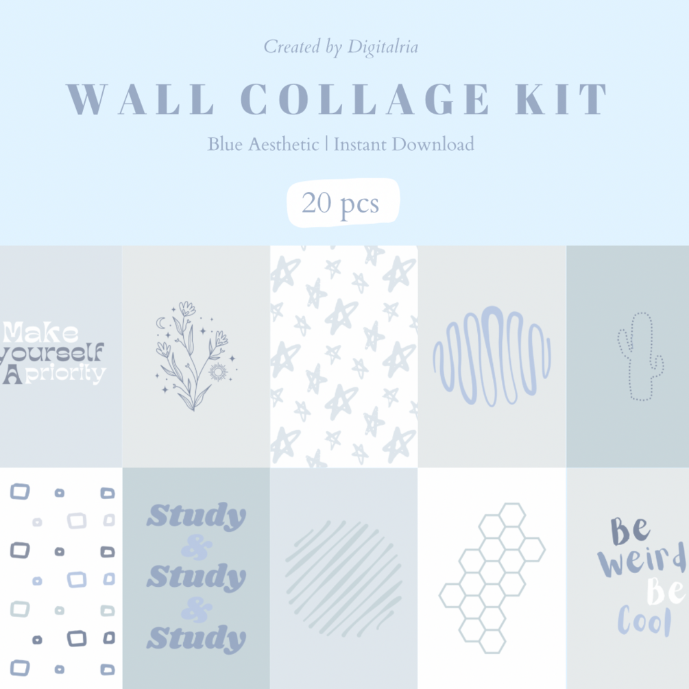 Blue Aesthetic Wall Collage Kit | Printable Collage Kit | 20 Pcs | Pinterest Inspired | Instant Download | DIY Wall Collage Bundle