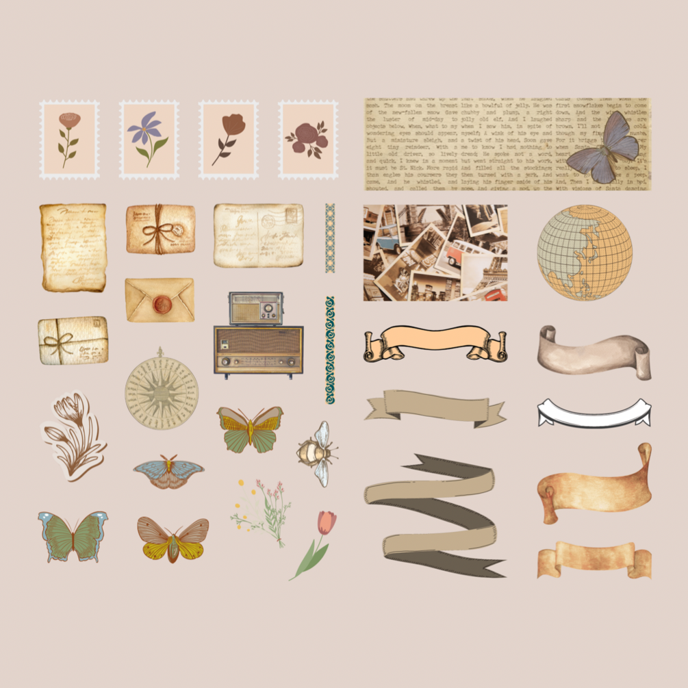 💖 155 pcs Pre-cropped Vintage Stickers