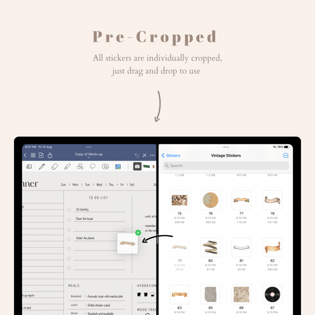 This vintage sticker pack is suitable for digital planning and journaling. It can be used in any note taking applications like GoodNotes, Notability, Noteshelf and more!